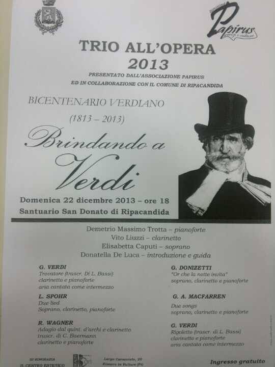 Domenica 22 Dicembre 2013 Dicembre 22, 2013Cronacaadmin Domenica 22 Dicembre 2013 presso il Santuario di San Donato alle ore 18,00 in occasione del Bicentenario Verdiano si terrà un Concerto di musica classica