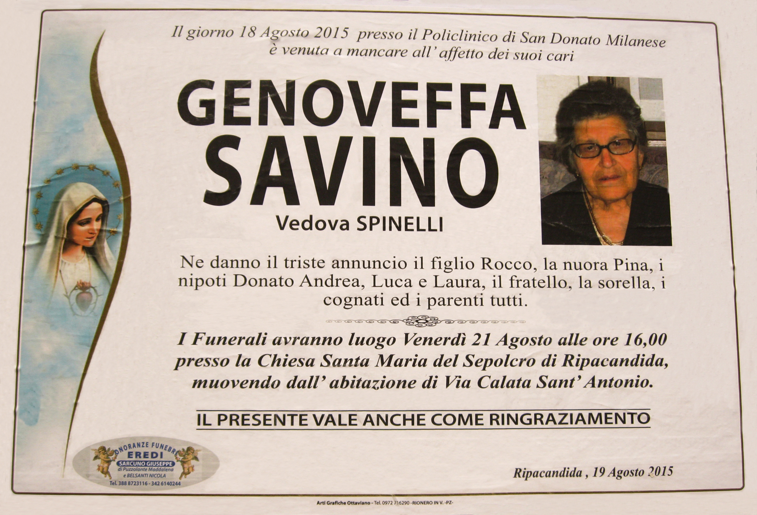 Martedì 18 Agosto 2015 Agosto 18, 2015Cronacaadmin Martedì 18 Agosto 2015 Viene a mancare Genoveffa SAVINO L’Associazione esprime il suo cordoglio e si associa al dolore dei familiari.