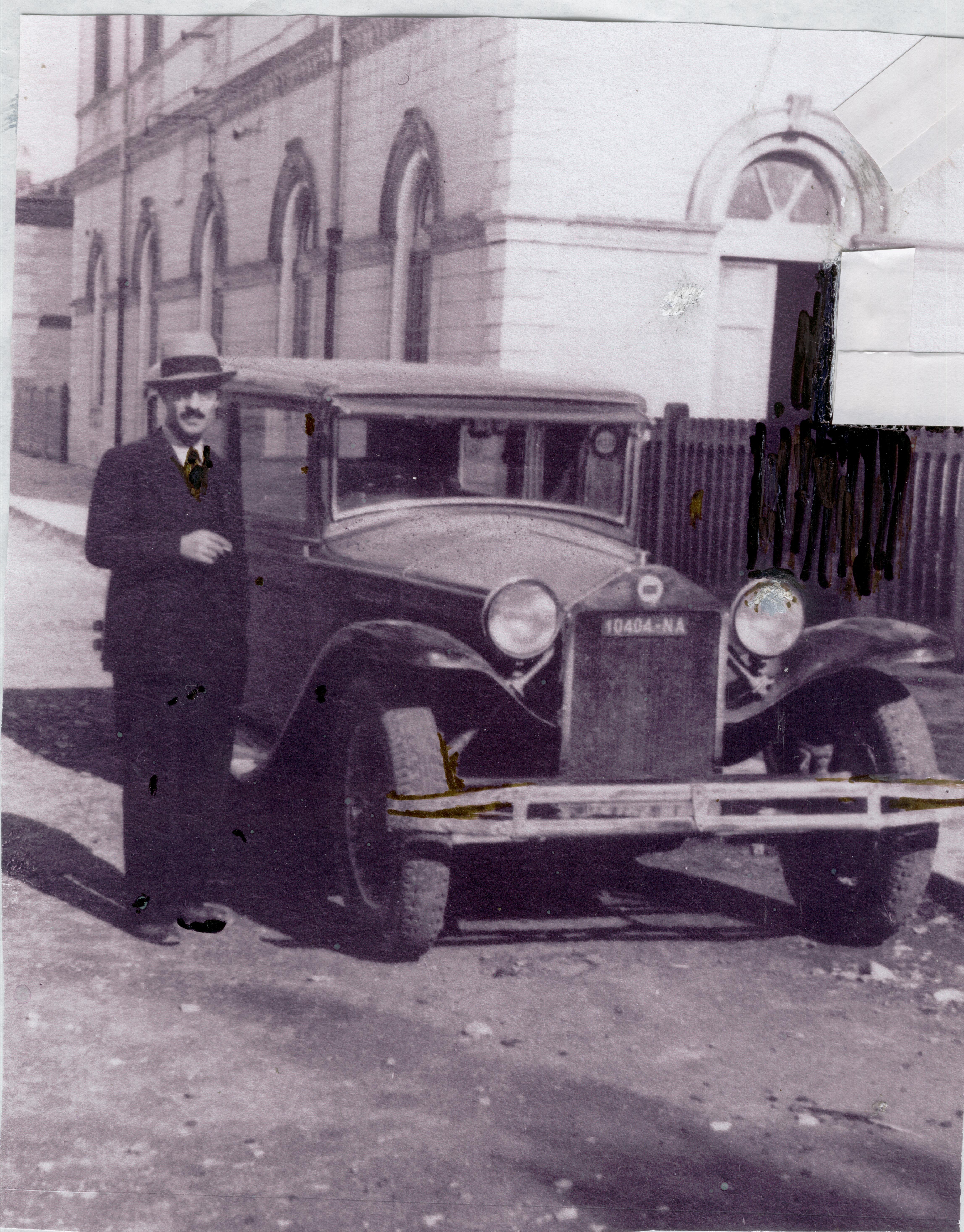 FOTO 90 Marzo 31, 2013Fototecaadmin Anno 1936 – Stazione ferroviaria Rionero Atella Ripacandida Michele LIOY con la sua autovettura, una LANCIA DILAMBDA.