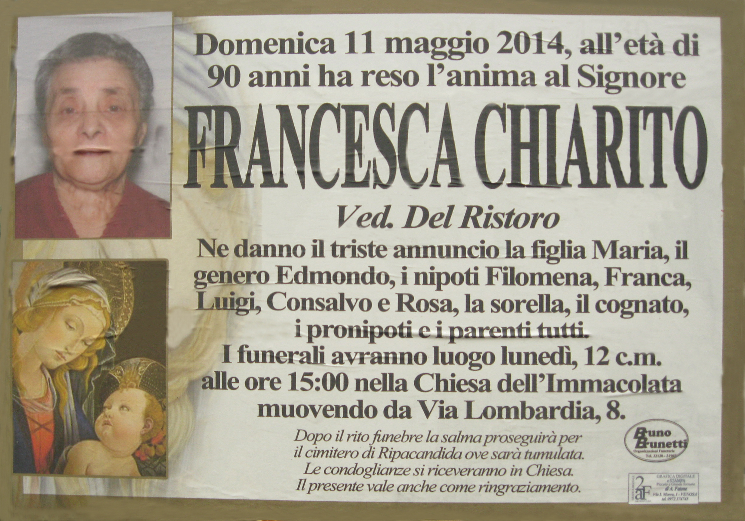 CHIARITO FRANCESCAL’Associazione esprime il suo cordoglio e si associa al dolore dei familiari.